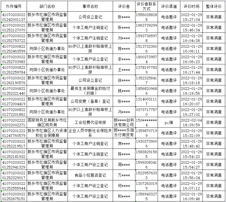 為主動(dòng)接受社會(huì)群眾監(jiān)督,進(jìn)一步提升政務(wù)服務(wù)水平,現(xiàn)將全區(qū)2022年1月29日-2月4日政務(wù)服務(wù)“好差評(píng)”結(jié)果公示如下: