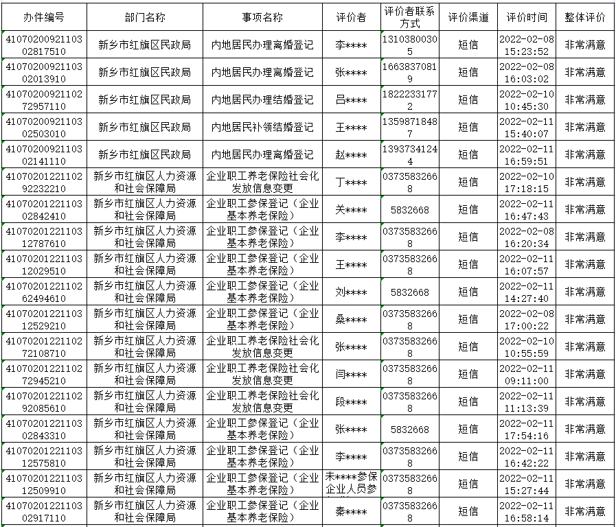 為主動接受社會群眾監(jiān)督,進一步提升政務(wù)服務(wù)水平,現(xiàn)將全區(qū)2022年2月5日-2月11日政務(wù)服務(wù)“好差評”結(jié)果公示如下: