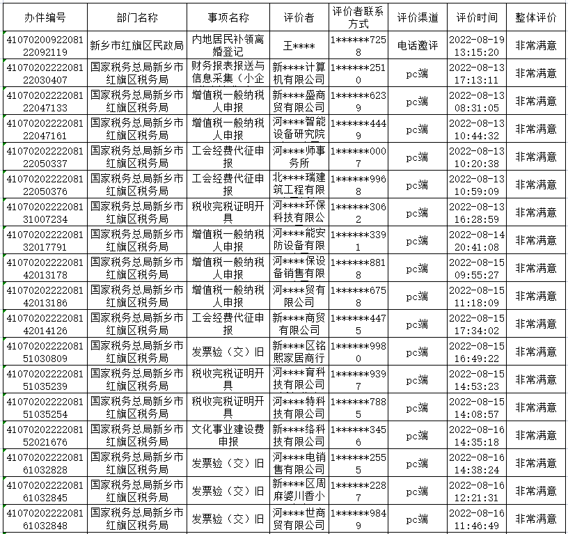 為主動接受社會群眾監(jiān)督,進一步提升政務服務水平,現(xiàn)將全區(qū)2022年8月13日-8月19日政務服務“好差評”結果公示如下: