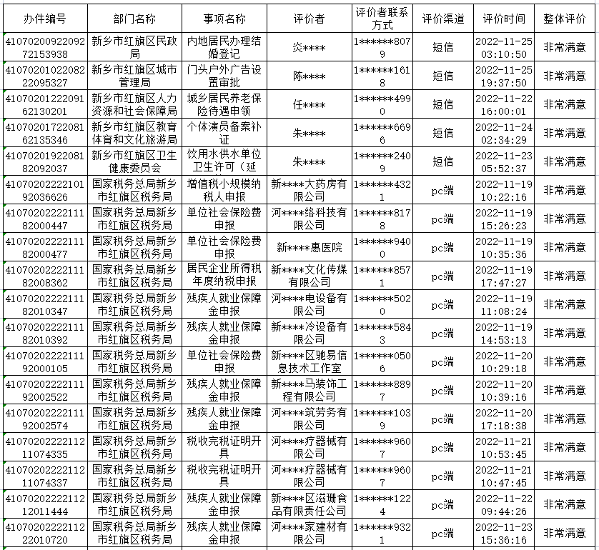 為主動(dòng)接受社會(huì)群眾監(jiān)督,進(jìn)一步提升政務(wù)服務(wù)水平,現(xiàn)將全區(qū)2022年11月19日-11月25日政務(wù)服務(wù)“好差評(píng)”結(jié)果公示如下: