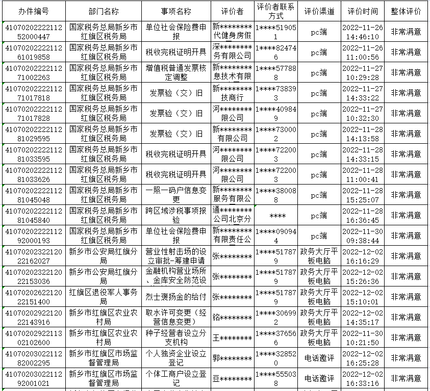 為主動接受社會群眾監(jiān)督,進一步提升政務(wù)服務(wù)水平,現(xiàn)將全區(qū)2022年11月26日-12月2日政務(wù)服務(wù)“好差評”結(jié)果公示如下: