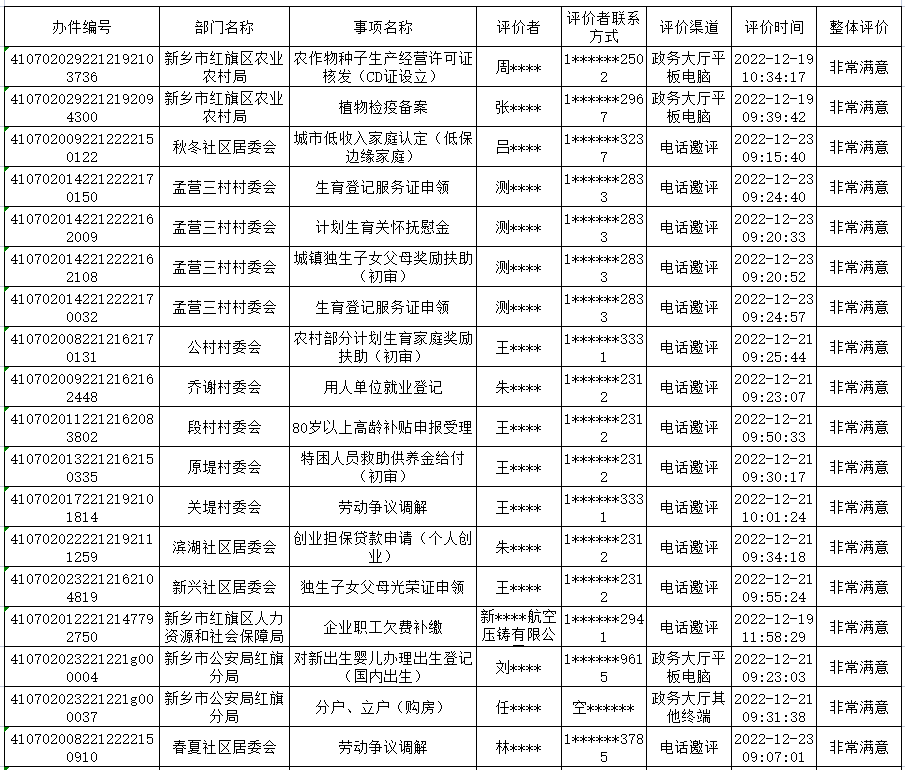 為主動(dòng)接受社會(huì)群眾監(jiān)督,進(jìn)一步提升政務(wù)服務(wù)水平,現(xiàn)將全區(qū)2022年12月17月-12月23日政務(wù)服務(wù)“好差評”結(jié)果公示如下: