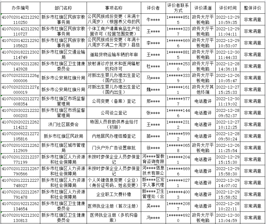 為主動接受社會群眾監(jiān)督,進(jìn)一步提升政務(wù)服務(wù)水平,現(xiàn)將全區(qū)2022年12月24日-12月31日政務(wù)服務(wù)“好差評”結(jié)果公示如下: