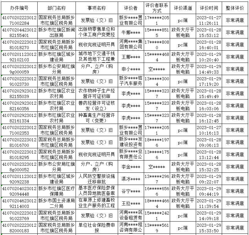 為主動接受社會群眾監(jiān)督,進一步提升政務(wù)服務(wù)水平,現(xiàn)將全區(qū)2023年1月23日-1月29日政務(wù)服務(wù)“好差評”結(jié)果公示如下: