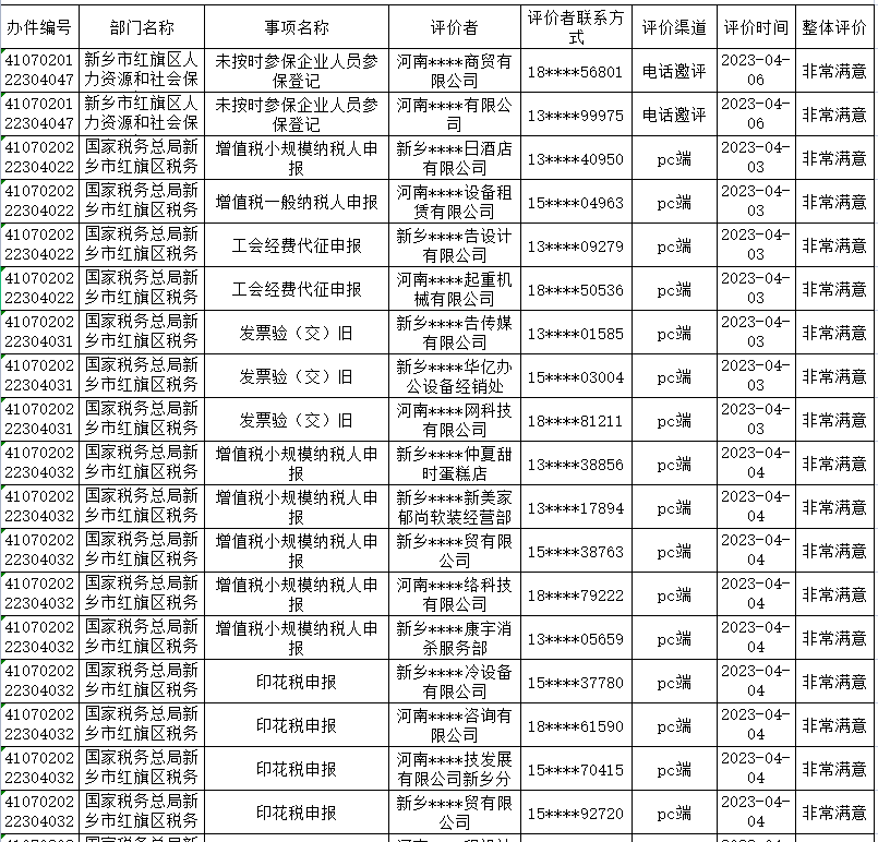 為主動接受社會群眾監(jiān)督,進一步提升政務服務水平,現(xiàn)將全區(qū)2023年4月3日-4月9日政務服務“好差評”結(jié)果公示如下: